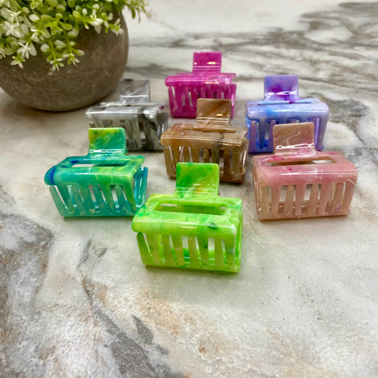 Hair Clip - Small Marbled - Bumpy Clam Shell